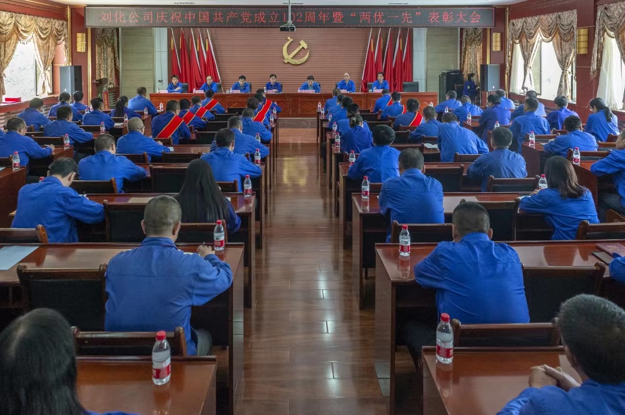 7月3日,公司在迎賓樓五樓會議室召開慶祝中國共產(chǎn)黨成立102周年暨“兩優(yōu)一先”表彰大會,熱烈慶祝中國共產(chǎn)黨成立102周年,重溫黨的歷史,傳承光榮使命,大力弘揚偉大建黨精神,表彰先進黨組織、優(yōu)秀黨務(wù)工作者和優(yōu)秀黨員,公司黨委書記、董事長劉峰等在家領(lǐng)導(dǎo)、受表彰的集體及個人、各單位黨政負(fù)責(zé)人、機關(guān)各部室負(fù)責(zé)人及黨員代表70余人參加會議。