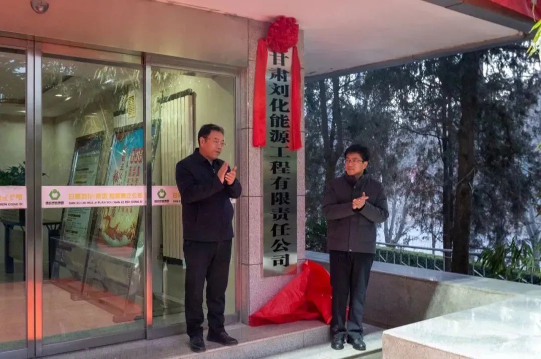 謝曉鋒、張鋒剛共同為甘肅劉化能源工程有限責任公司揭牌。