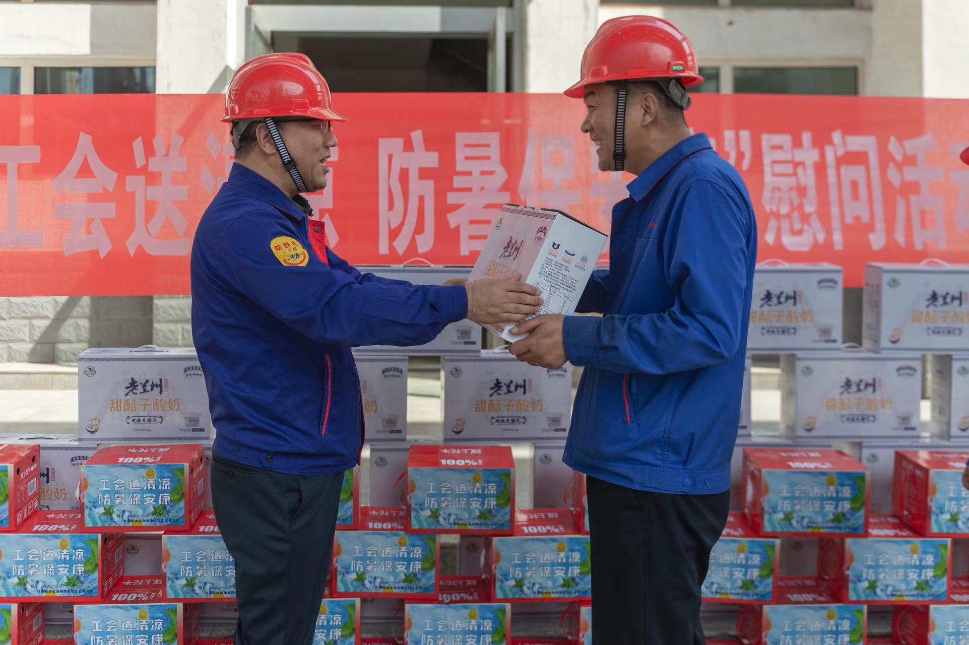活動(dòng)中,公司領(lǐng)導(dǎo)帶領(lǐng)工會(huì)工作人員為合成氨、機(jī)電儀維保中心等生產(chǎn)車間發(fā)放酸奶、蘋果汁飲料等防暑降溫物資,為持續(xù)高溫“烤”驗(yàn)、堅(jiān)守崗位,奮斗在一線的職工們送去防暑降溫慰問品和暖心問候。